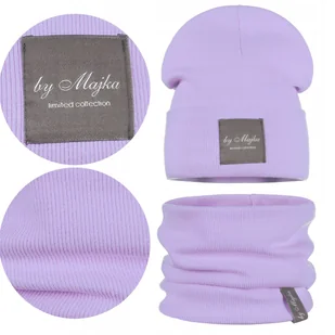 Wiosenny Komplet Dziecięcy Podwójny Materiał Czapka Komin Fioletowy 38-42