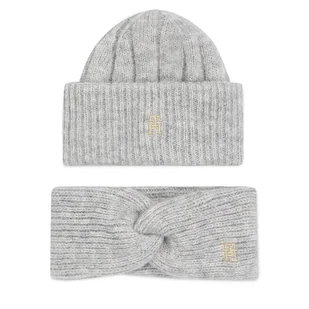 Zestaw czapka i opaska Tommy Hilfiger Th Timeless Beanie + Headband AW0AW15370P4A Szary