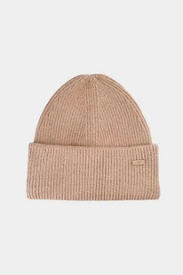 Czapka na zimę jest wykonana w 49% z wiskozy, która jest miękka, niezwykle gładka w dotyku i przyjemnie otula. Dzięki dodatkowi poliestru (31%) materiał utrzymuje fason i jest odporny na zużycie nawet przez wiele sezonów. Ma podwinięty mankiet.