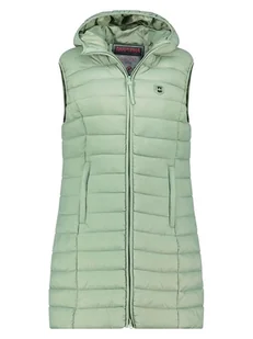 Kamizelka pikowana "Vakitalana Long" w kolorze miętowym - właściwości termoizolacyjne - oddychalność - wodoodporność - kaptur: tak - zapięcie: suwak - zasuwane kieszenie boczne: 2 - krój: prosty - look: jednokolorowy - pikowanie: