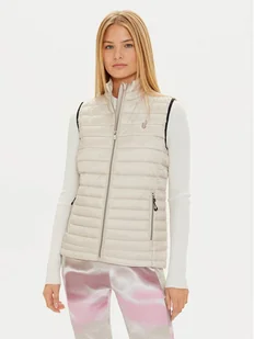 Jasnobeżowa Pikowana Kamizelka Bezrękawnik z Kieszeniami i Wysokim Kołnierzem Bellamis