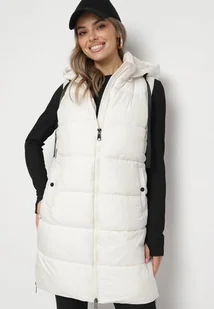 Biała Długa Kamizelka Pikowana z Odpinanym Kapturem i Sznurkami do Regulacji Nerienna