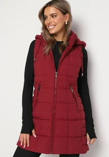 Bordowa Pikowana Kamizelka z Odpinanym Kapturem i Kieszeniami na Suwak Anoria