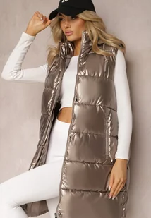Brązowo-Złota Kamizelka z Pikowaniem i Kapturem Brisel