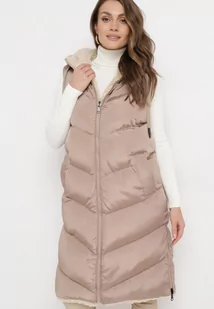 Beżowa Długa Pikowana Kamizelka Zapinana na Napy i Suwak Ishtar