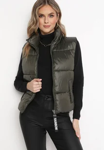 Ciemnozielona Kamizelka z Szerokim Kołnierzem Pikowana Risara