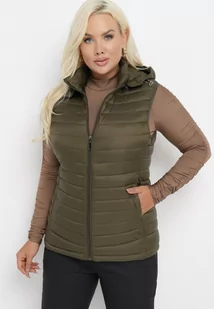 Ciemnozielona Pikowana Kamizelka na Suwak z Kapturem i Kieszeniami Faporga