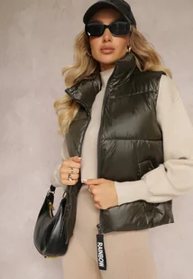 Ciemnozielona Pikowana Kamizelka z Szerokim Kołnierzem Cerissa