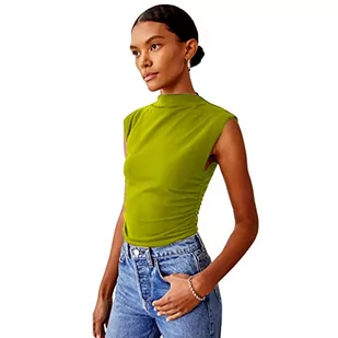 Clotth Damska koszulka typu bottom, okrągły dekolt, wąski krój, bez rękawów, wąska, krótka kamizelka, żółty, S