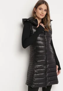 Czarna Długa Kamizelka Bezrękawnik z Klasycznym Pikowaniem i Kapturem Shin