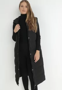Czarna Długa Kamizelka Bezrękawnik z Klasycznym Pikowaniem i Kapturem Shin