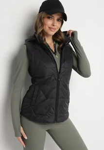 Czarna Kamizelka z Geometrycznym Pikowaniem i Kapturem Koridi