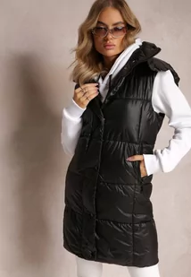 Czarna Pikowana Kamizelka z Zasuwanymi Kieszeniami i Odpinanym Kapturem Cianefela