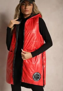 Czerwona Długa Kamizelka z Naszywką i Kapturem Wykończona Napami Nevellitae