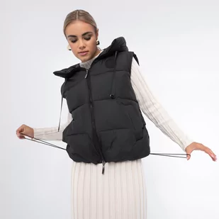 Damska kamizelka pikowana. Ta wyjątkowa kamizelka ochroni Cię od zimna w chłodniejsze dni. Oversizowy fason w klasycznej kolorystyce urozmaici każdą Twoją stylizację, zarówno dopasowaną sukienkę, jak i ulubiony gruby sweter i dżinsy. Wykonana została z poliestru, a dzięki pikowaniu jest bardzo przyjemna w dotyku. Nieodpinany kaptur możesz ściągnąć troczkami i szczelnie otulić głowę oraz szyję.