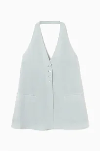 Z przodu ta kamizelka może wyglądać klasycznie, ale jest zupełnie wyjątkowa. Ma długi krój z mocowaniem na karku - do związania na plecach przeznaczone są wąskie sznurki. Precyzyjne zaszewki w talii oraz dwie kieszenie z wypustką przypominają o trosce COS o wysoką jakość każdego szwu. Elegancji dodaje jej domieszka jedwabiu. Normalny fason.
