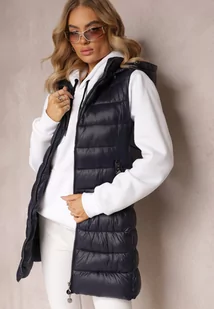 Granatowa Pikowana Kamizelka z Odpinanym Kapturem Samore