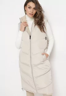 Beżowa Długa Pikowana Kamizelka Zapinana na Napy i Suwak Ishtar
