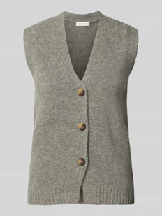 Kamizelka z dzianiny damska Christian Berg Woman;Czysta wełna;Krój regular fit;Dekolt w serek;Listwa guzikowa;Długość tyłu w rozmiarze S: 56 cm