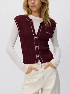 Kamizelka o dopasowanym kroju, wykonana z dzianiny.