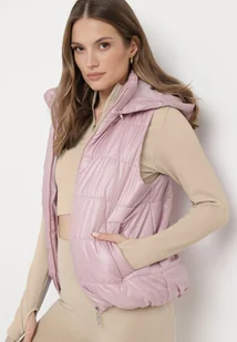 Różowa Kamizelka z Odpinanym Kapturem i Kieszeniami Pikowana Aggevia