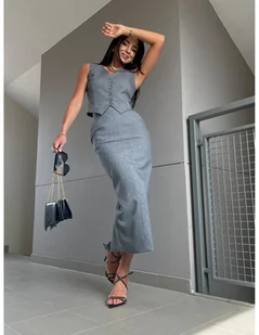 Stylowa bluzka kamizelka LUSIA - szara Dodaj elegancji swojej garderobie z kamizelką LUSIA w stylowej szarości, która idealnie podkreśli Twoją sylwetkę. Jej dopasowany krój i subtelne guziki na przodzie nadają wyrafinowanego charakteru każdej stylizacji. Kamizelka świetnie sprawdzi się zarówno w zestawieniu z elegancką spódnicą, jak i z klasycznymi spodniami, tworząc stylowy look na co dzień lub do pracy. Szara kolorystyka jest ponadczasowa i uniwersalna, dzięki czemu łatwo dopasujesz ją do innych elementów swojej garderoby. Idealna do noszenia solo lub w połączeniu z marynarką, aby dodać wyrazistości i szyku każdemu zestawowi.