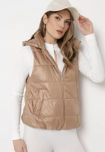Beżowa Kamizelka z Odpinanym Kapturem i Kieszeniami Pikowana Aggevia