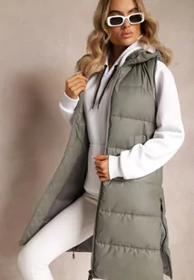 Szara Długa Kamizelka Pikowana z Nieodpinanym Kapturem Faelissa
