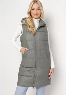 Szara Kamizelka Pikowana o Długim Fasonie z Kapturem Prassa