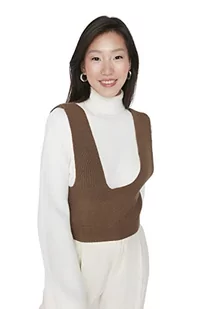 TRENDYOL Damska kamizelka z dekoltem w karrée, jednokolorowa, podkreślająca figurę, dziergana sweter, brązowa, M, brązowy, M