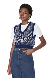 TRENDYOL Damska kamizelka z dekoltem w serek, jednokolorowa, podkreślająca figurę, dzianinowa blue, L, granatowy, L