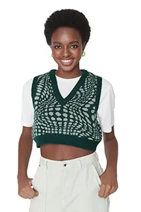 TRENDYOL Damska kamizelka z dekoltem w serek, jednokolorowa, podkreślająca figurę, dzianinowa bluza, morska, L, morski, L