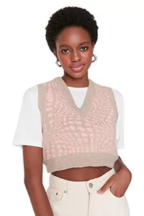 TRENDYOL Damska kamizelka z dekoltem w serek, jednokolorowa, podkreślająca figurę, dzianinowa, różowa, M, Rosa, M