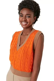 Trendyol Damska kamizelka z dekoltem w serek, zwykła, pomarańczowa, S, pomarańczowy, S