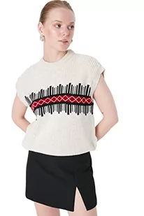 TRENDYOL Damska kamizelka z dzianiny z okrągłym dekoltem, wzór etniczny, regularny, beżowy, S