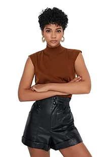 TRENDYOL Damska kamizelka z golfem, jednokolorowa, regularna, dzianinowa, brązowy, S