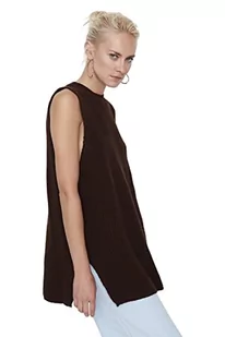 Trendyol Damska kamizelka z okrągłym dekoltem, jednokolorowa, dopasowana, brązowa, S, Brązowy, S