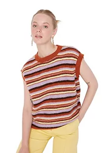 TRENDYOL Damska kamizelka z okrągłym dekoltem, jednokolorowa, regularna, z dzianiny, brązowa, L, brązowy, L