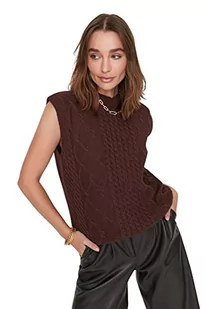 TRENDYOL Damska kamizelka z okrągłym dekoltem, jednokolorowa, regularna, z dzianiny, brązowa, S, brązowy, S