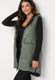 Zielona Kamizelka Długa z Kapturem Ozdobiona Naszywką Zapinana na Napy Nevettea