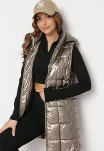 Złota Kamizelka z Wypukłym Pikowaniem Kapturem i Lakierowanym Efektem Damess
