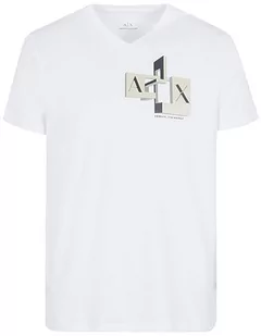 Armani Exchange Męski t-shirt Slim Fit V-Neck Ax Block Graphic Tee, biały, S