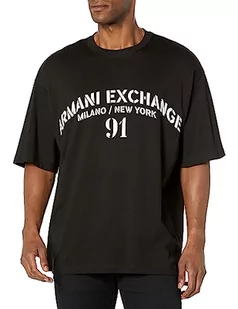 Armani Exchange Męski T-shirt z logo army oversize, czarny biały, XXL
