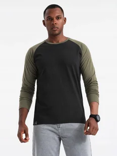 Bawełniany męski longsleeve czarno-oliwkowy Ombre OM-LSCL-0105 V3 roz. L