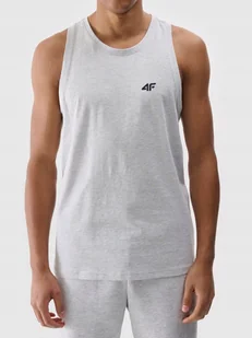 Top 4F męski idealnie sprawdzi się jako element zarówno casualowych, jak i sportowych stylizacji na co dzień. Posiada krój regular, który wygodnie dopasowuje się do sylwetki oraz standardową długość sięgającą do linii bioder. Splot single jersey z jednostronną gładką powierzchnią sprawia, że koszulka jest elastyczna i komfortowa w noszeniu. Koszulka bez rękawów męska dzięki gramaturze 180 gsm jest miękka w dotyku i dobrze się układa. Nie prześwituje oraz zapewnia trwałość i wygodę podczas całorocznego noszenia. Tank top męski jest wykonany w 100% z bawełny, dzięki czemu jest miękki, trwały i przyjemny w dotyku. Okrągły dekolt jest zakończony lekkim ribowaniem. Szerokie otwory na ramiona. Bokserski tył zapewnia nieograniczoną swobodę ruchu ramion.  Top bez rękawów męski - CECHY: gramatura: 180 gsm zakres rozmiarów: S-XXL krój: regular, który wygodnie dopasowuje się do sylwetki wykonana w 100% z bawełny, dzięki czemu jest miękka, trwała i przyjemna w dotyku jednolita kolorystyka pasująca do wielu stylizacji miękka w dotyku dzianina single jersey o gładkiej powierzchni okrągły dekolt z lekkim ribowaniem szerokie otwory na ramiona  bokserski tył