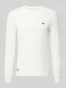 Bluzka z długim rękawem męska Lacoste;Model ‘Serafino’;Efekt: jednolity kolor;Krój: Krój regular fit ;Aplikacja: Wyhaftowane logo, naszywka z logo;Dekolt: Okrągły dekolt;Rękaw: