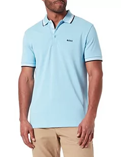 BOSS Męska koszulka polo Paddy z bawełny organicznej z kontrastowymi detalami z logo, NIEBIESKI, S
