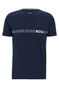 BOSS Męski T-shirt RN Slim Fit Slim-Fit z ochroną UV LSF 50+, granatowy, L