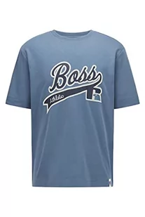 BOSS Męski t-shirt T RA Relaxed-Fit z bawełny Pima z ekskluzywnym logo, niebieski, M