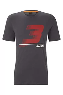 BOSS Męski T-Shirt Tee3055 z bawełnianego dżerseju z nadrukiem w stylu wyścigowym, ciemnoszary, XXL